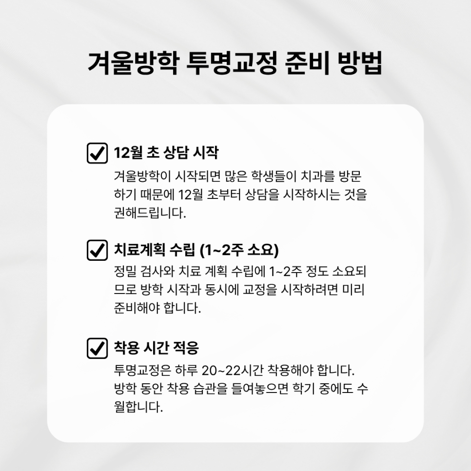 겨울방학 투명교정, 이렇게 준비하세요