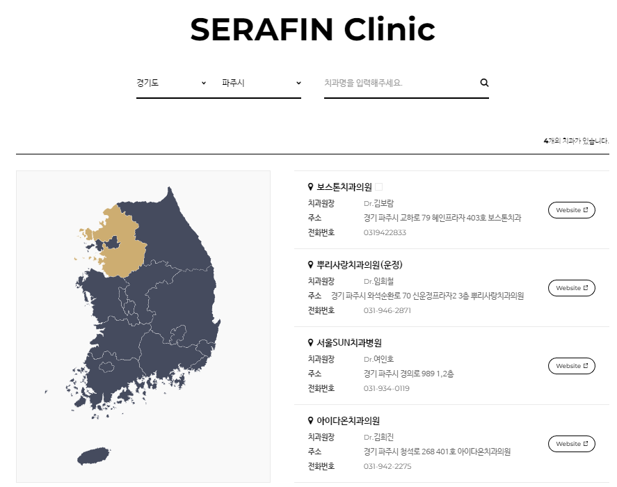 세라핀 홈페이지에 접속하면 세라핀을 취급하는 전국 치과를 찾을 수 있습니다.