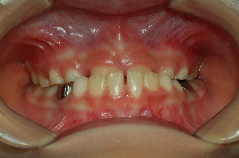 이 아이는 초등학교 2학년 때 교정을 시작하였으며
