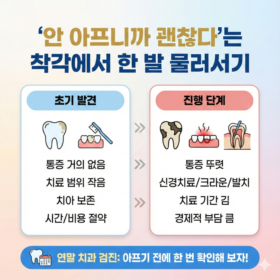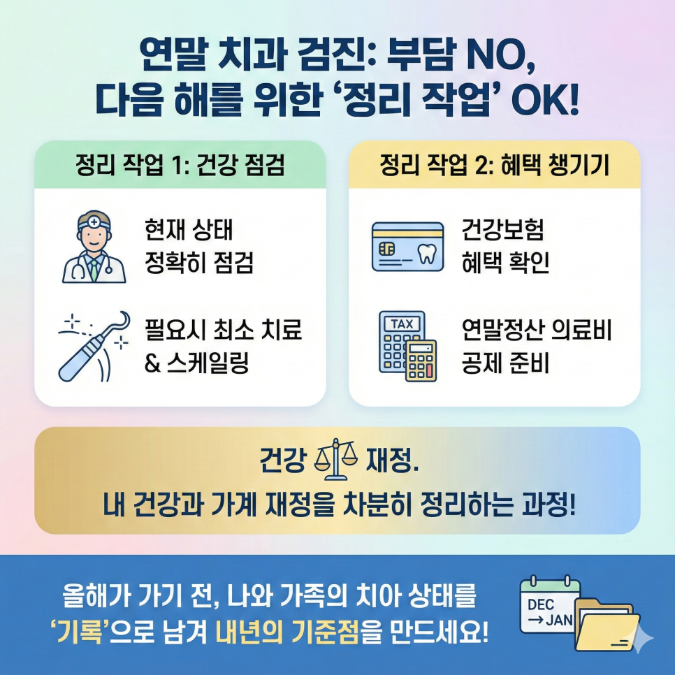 “아프기 전에 한 번 확인해 보자” 라는 관점으로 연말 치과 검진을 바라보면 좋아요.