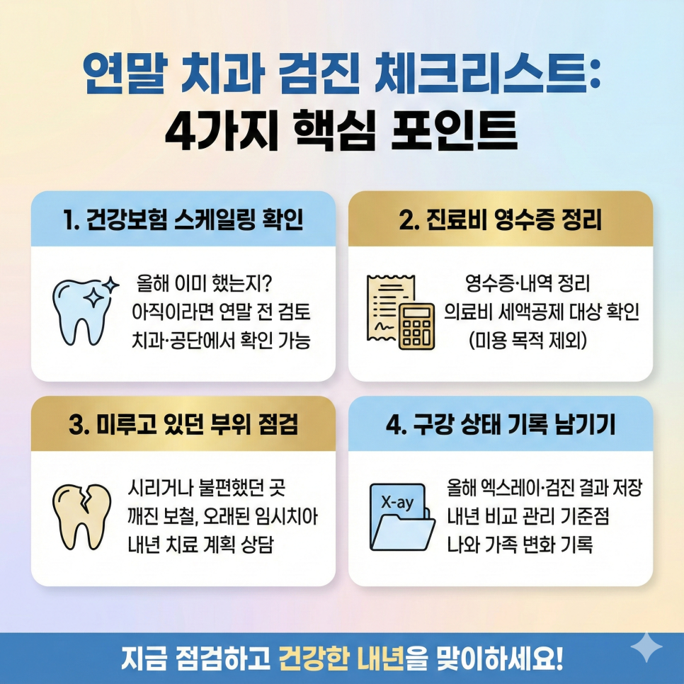 연말 치과 검진을 고민하고 있다면, 다음 네 가지를 한 번 점검해 보세요.