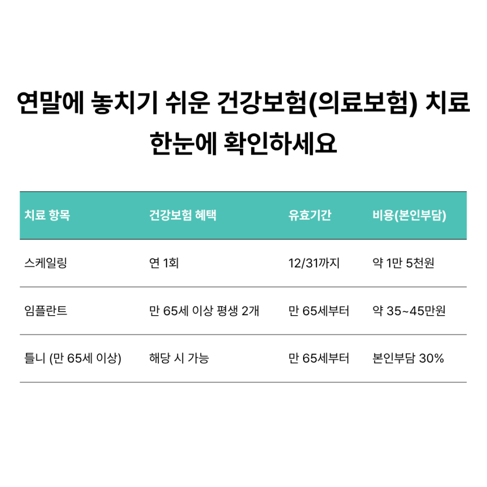 연말에 놓치기 쉬운 치료, 한눈에 확인하세요
