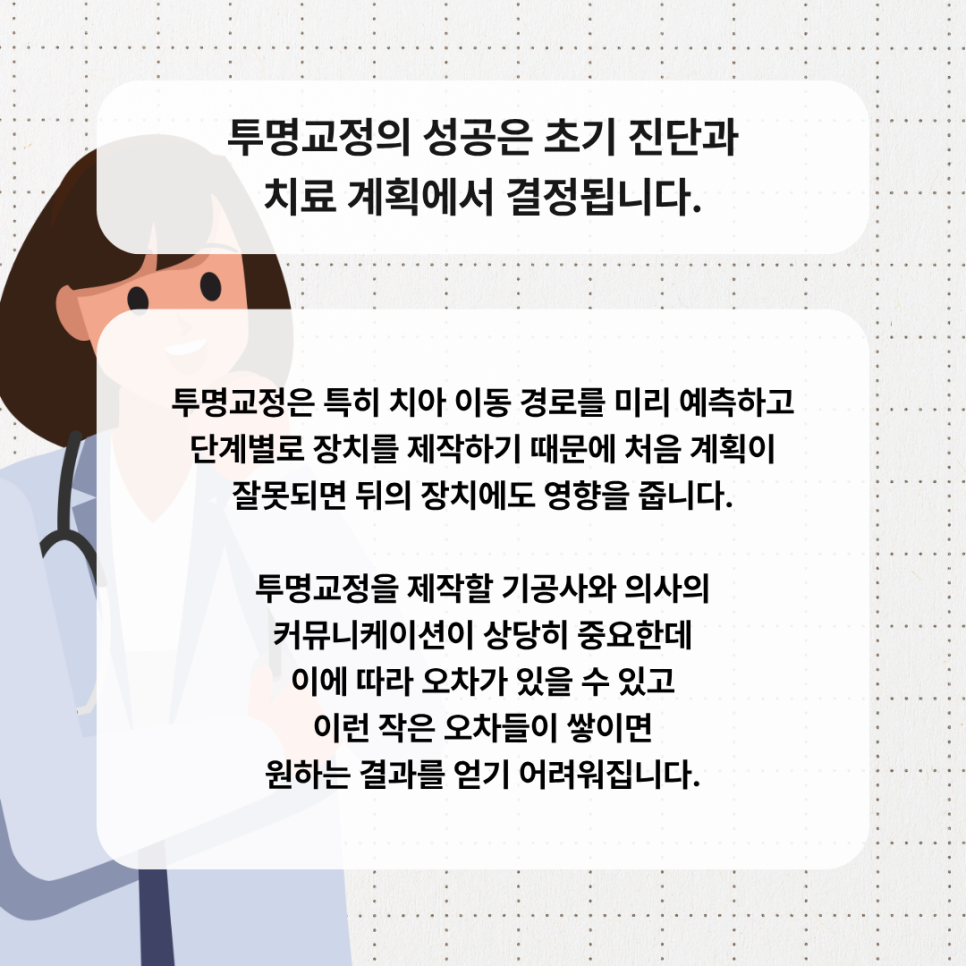아무래도 투명교정은 환자 맞춤형으로 교정장치가